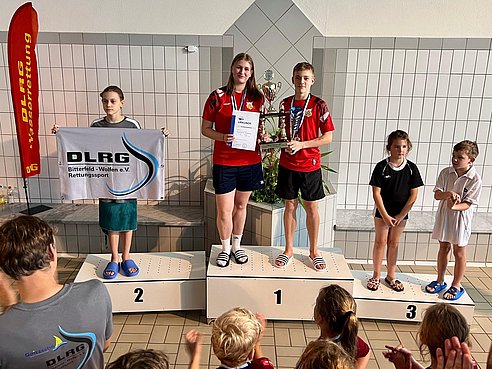 Nachwuchsathleten aus dem Leistungs- und Breitensport traten dabei in den verschiedenen Disziplinen des Rettungsschwimmens gegeneinander an. In einer mussten die Sportler etwa, während sie mit Vollgas die 25-Meter-Bahn zurücklegten, auch noch eine der mit Wasser gefüllten Puppen vom Beckenboden fischen und ans andere Ende bringen.
